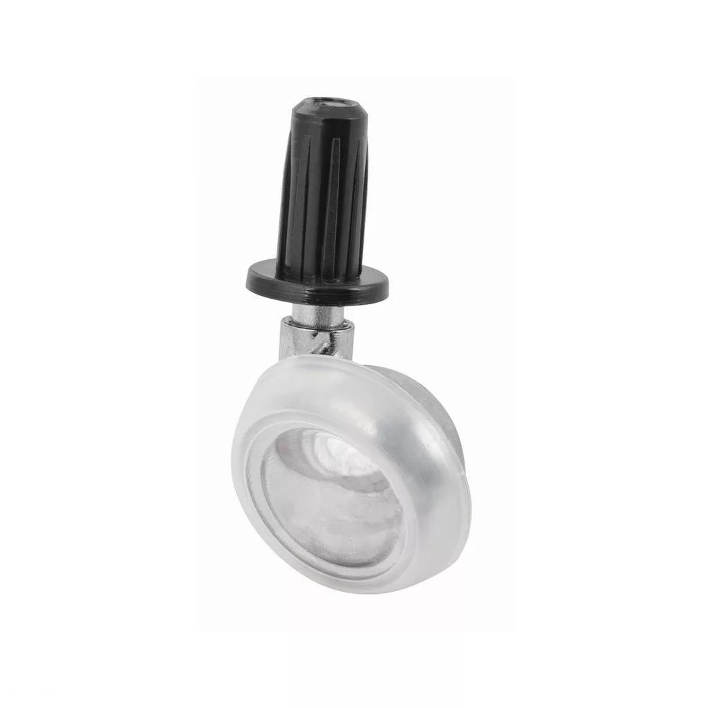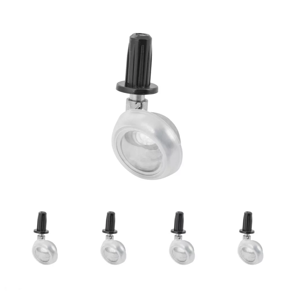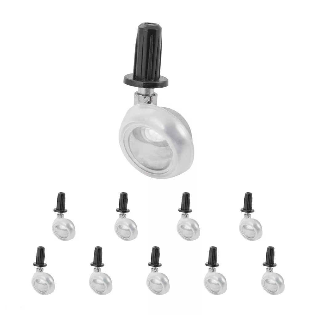 40 mm átmérőjű bútorkerék puha padlókhoz. Teherbírás akár 50 kg. Hüvellyel felszerelve. A görgő falába történő beszereléséhez 12 mm átmérőjű fúró szükséges.