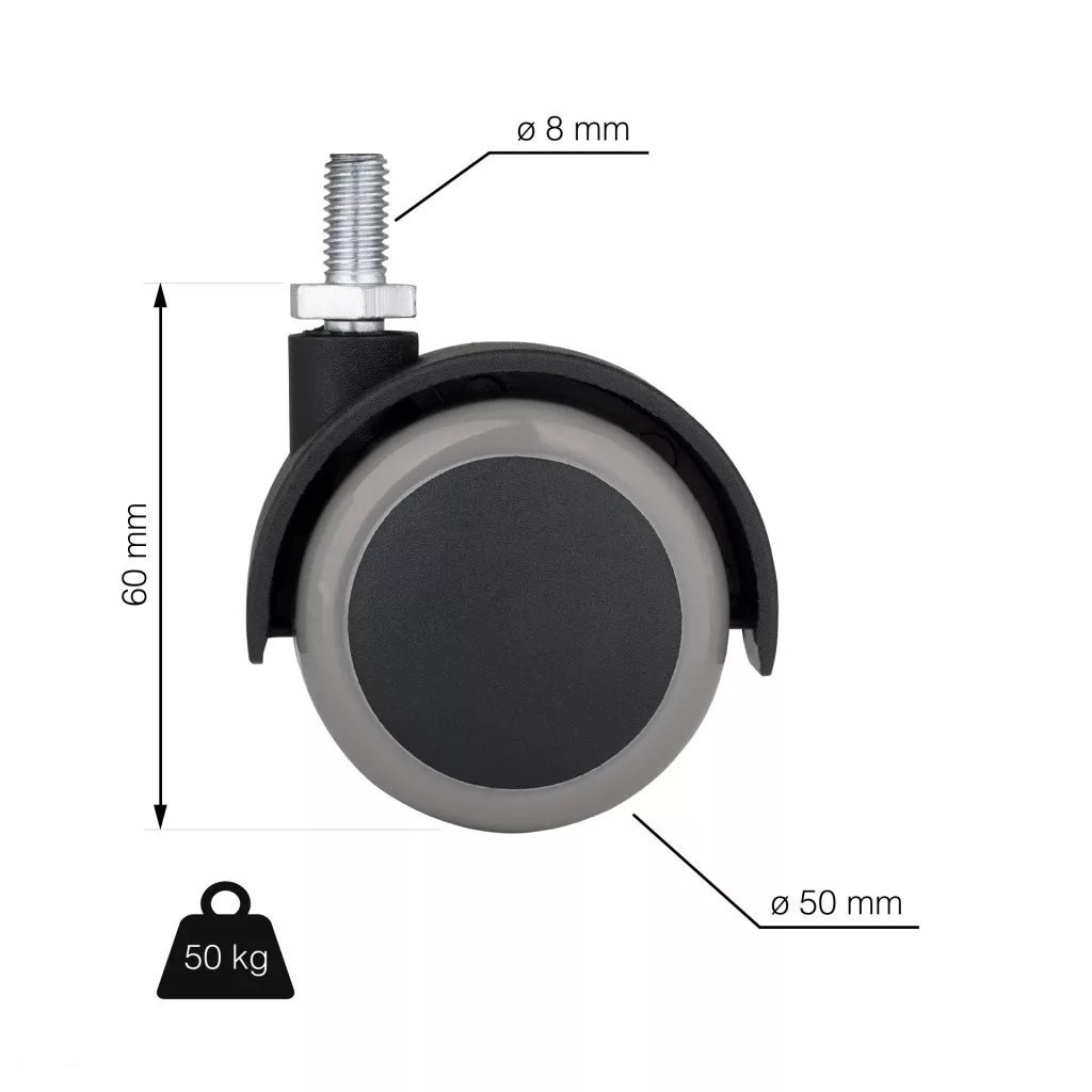 Bútorkerék M8-as csappal 50 mm átmérőjű 50 kg teherbírású