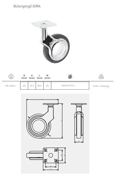 Gumis görgő talpas GIRA 60mm króm-fekete Króm-fekete 60mm