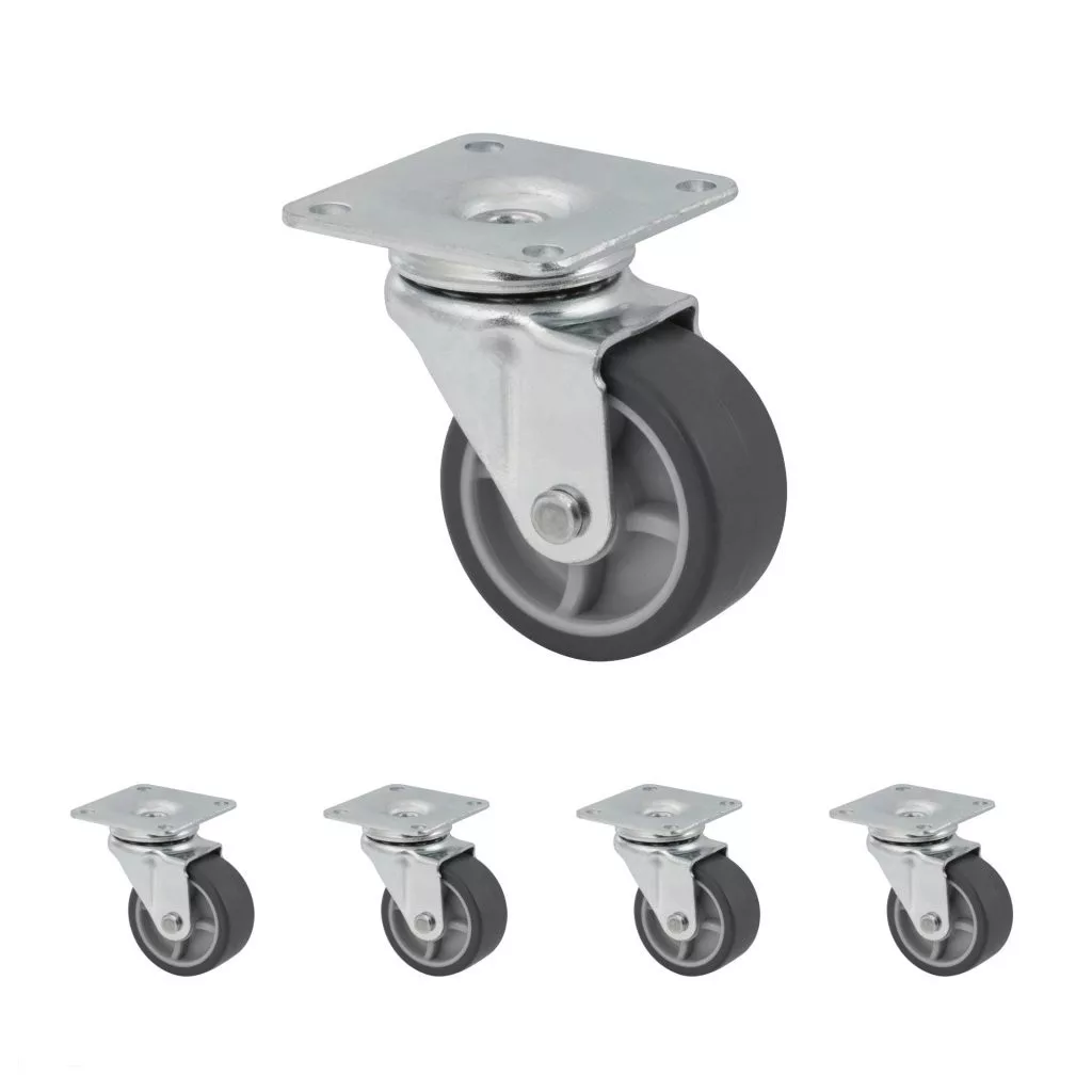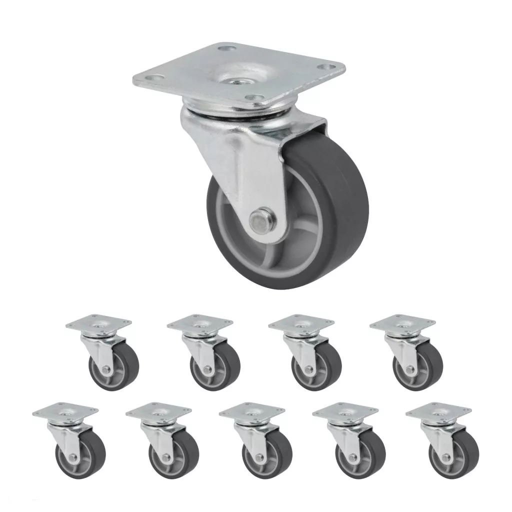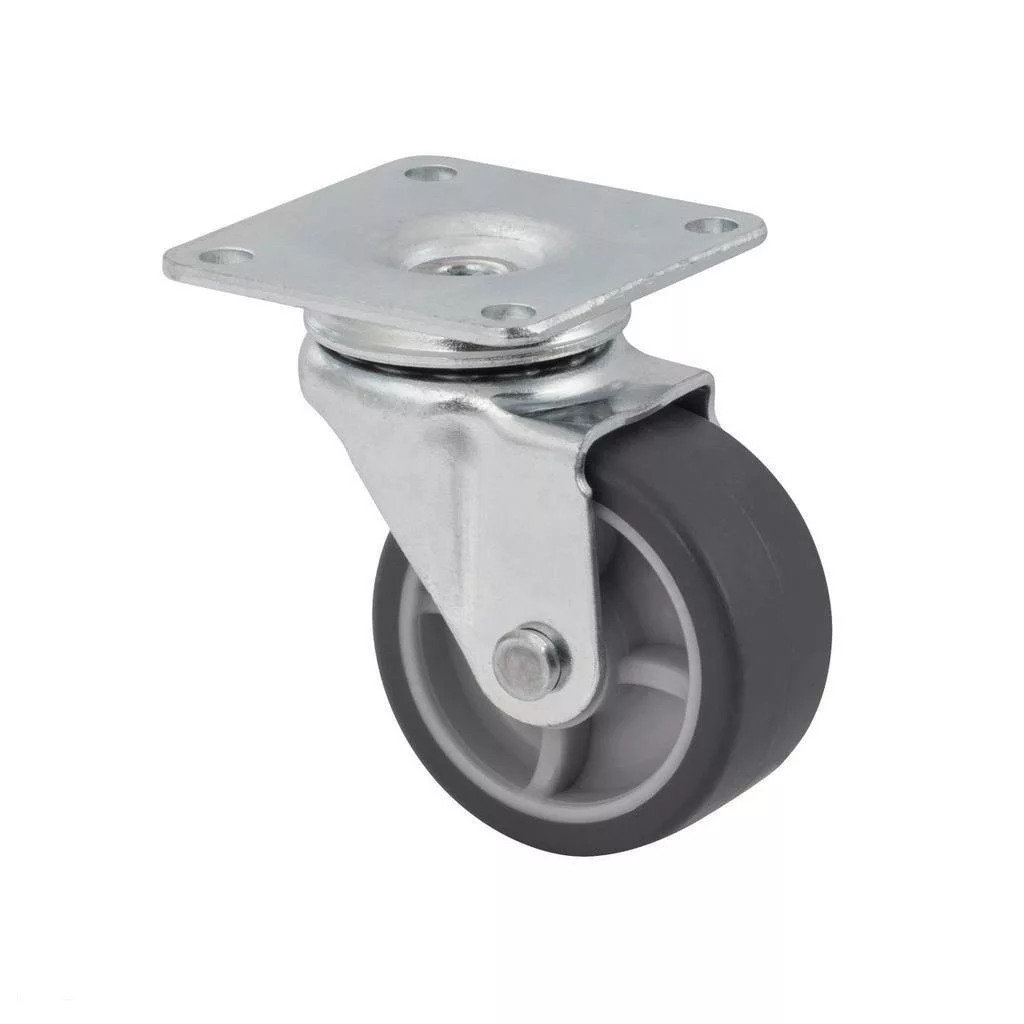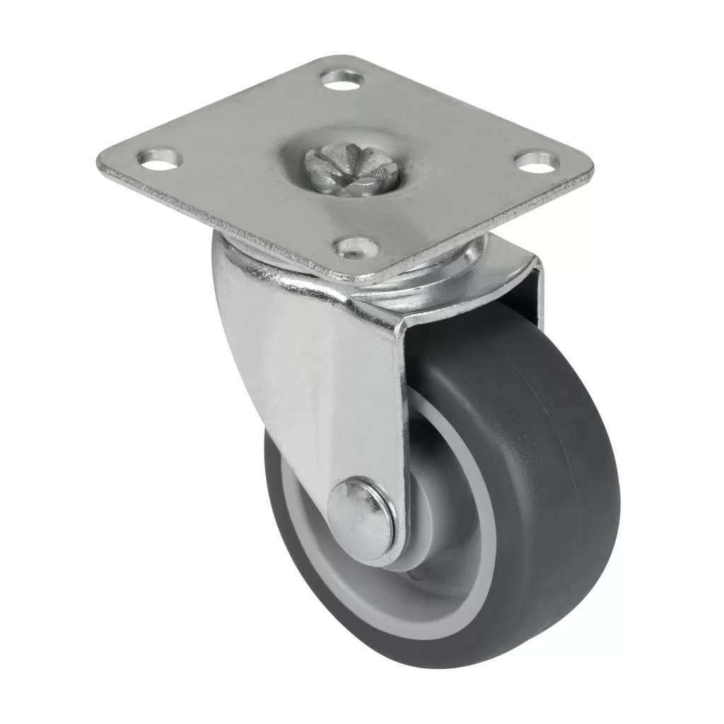 40 mm átmérőjű, forgó készülékkerék kemény padlókhoz, 42x42 mm-es talppal és 35 kg teherbírással.