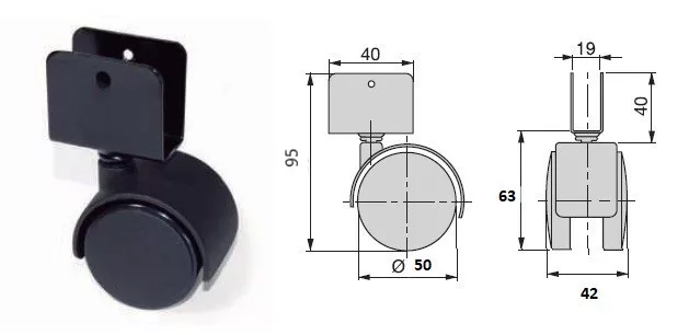 Műanyag görgő élre szerelhető fekete 50mm