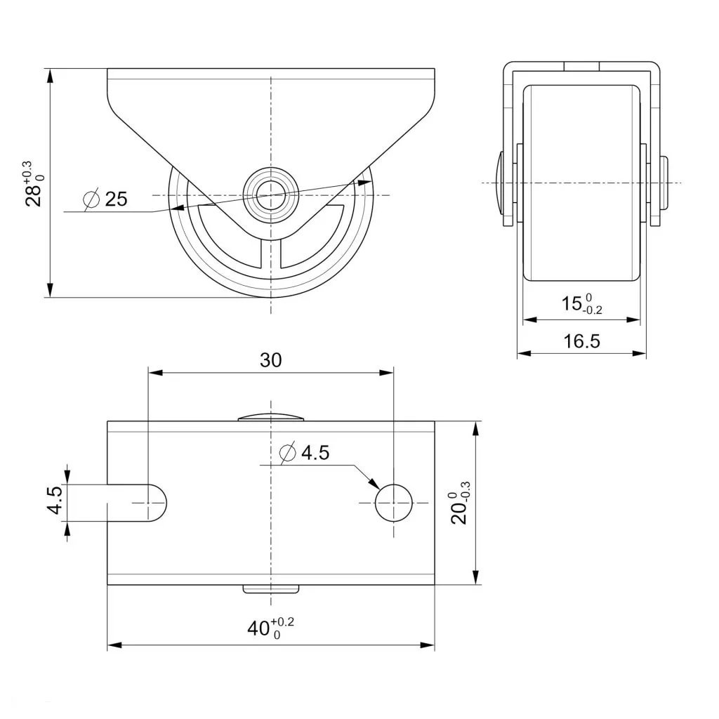 Szekrénygörgő kemény padlóra 25 mm átmérőjű 30 kg teherbírású