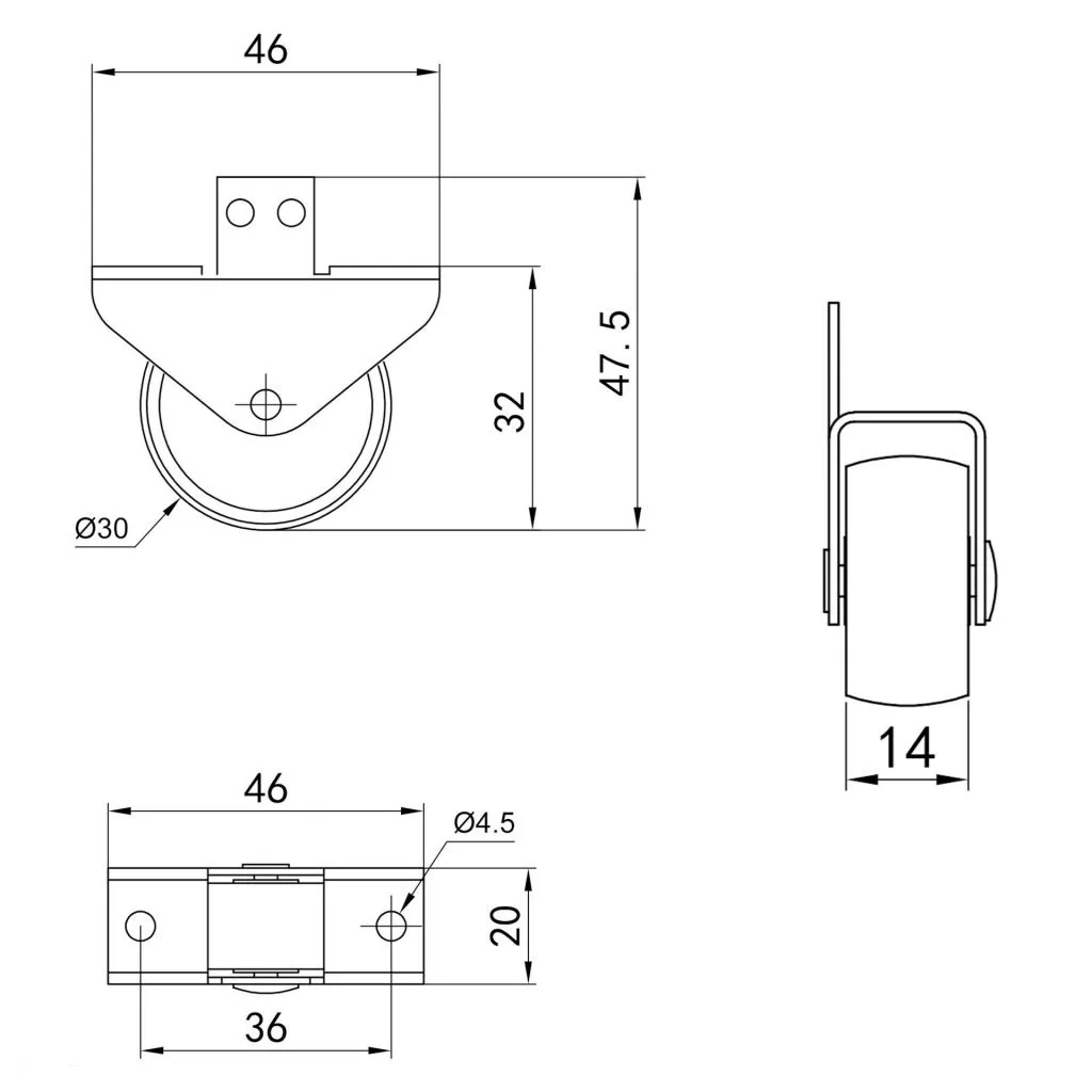 30 mm átmérőjű szekrénygörgő puha padlóra tervezve. Teherbírás akár 40 kg.