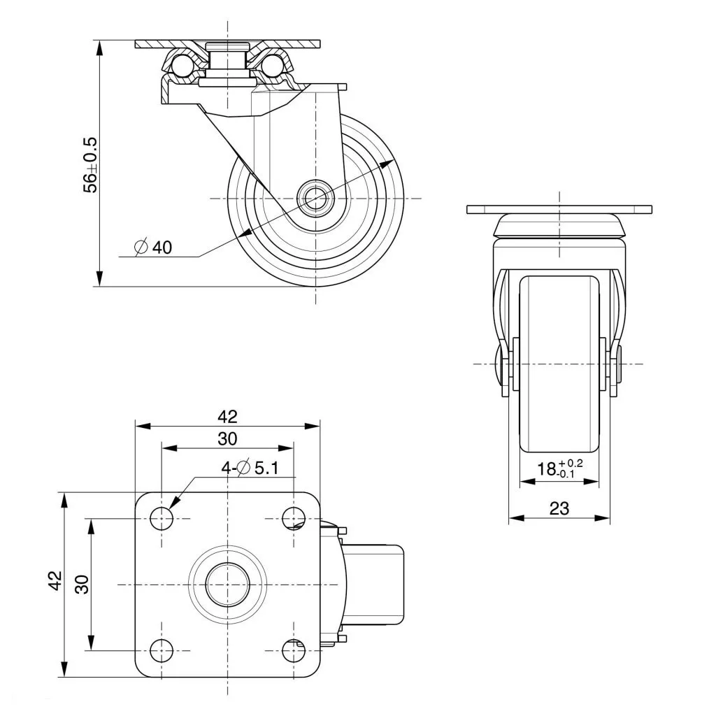 40 mm átmérőjű szerszámkerék puha padlókhoz. Teherbírás 30 kg.