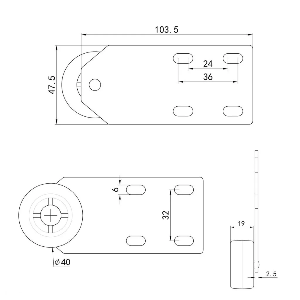 40 mm átmérőjű készülékkerék, kemény padlóra tervezve. Teherbírás akár 35 kg.